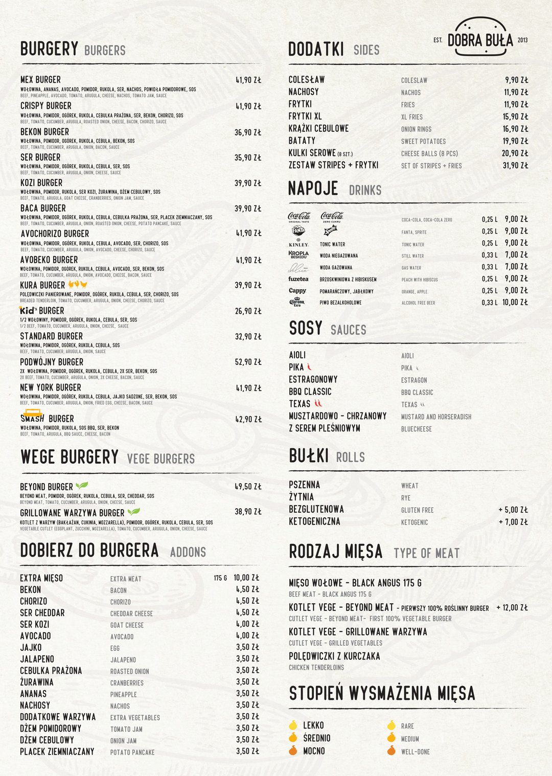 Zajrzyj po burgera, którym naprawdę możesz się pochwalić! W Dobrej Bule w Legionowie, sam wybierasz swoją bułkę (pszenna, żytnia, bezglutenowa albo keto), stopień wysmażenia mięsa i sos z autorskiej receptury. Burger tworzony jest tu zawsze ze świeżych, starannie wybranych składników. Liczy się naturalność, smak i szybkość podania – niezależnie, czy wybierasz klasycznego burgera, czy pełną personalizację. Dobra Buła to miejsce, do którego wracasz po więcej – od 2013 roku szlifuje burgery od food trucka po rozpoznawalny lokal w Warszawie, gdzie setki fanów chwalą smak i możliwość tworzenia burgera po swojemu. Masz ochotę na coś ekstra? Sprawdź, dlaczego te burgery doceniło już tylu smakoszy! 🍔🧡
